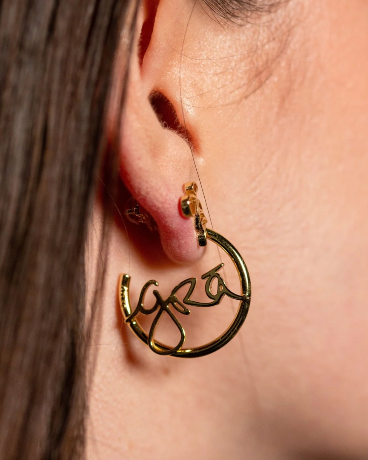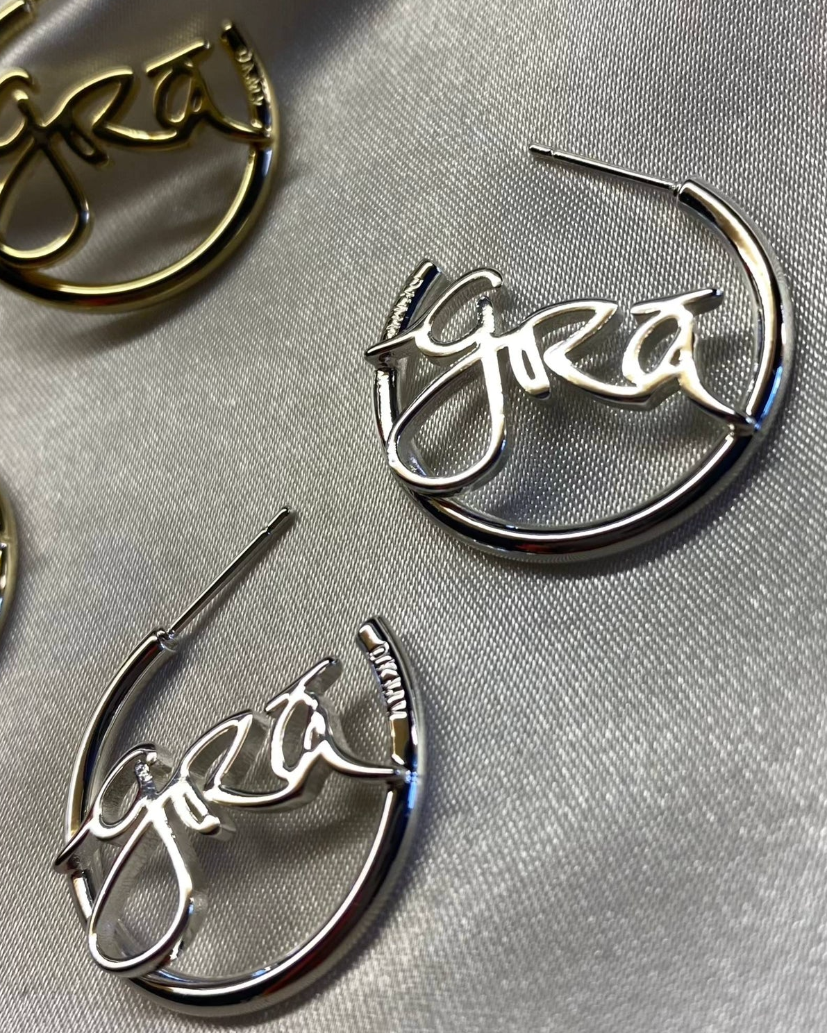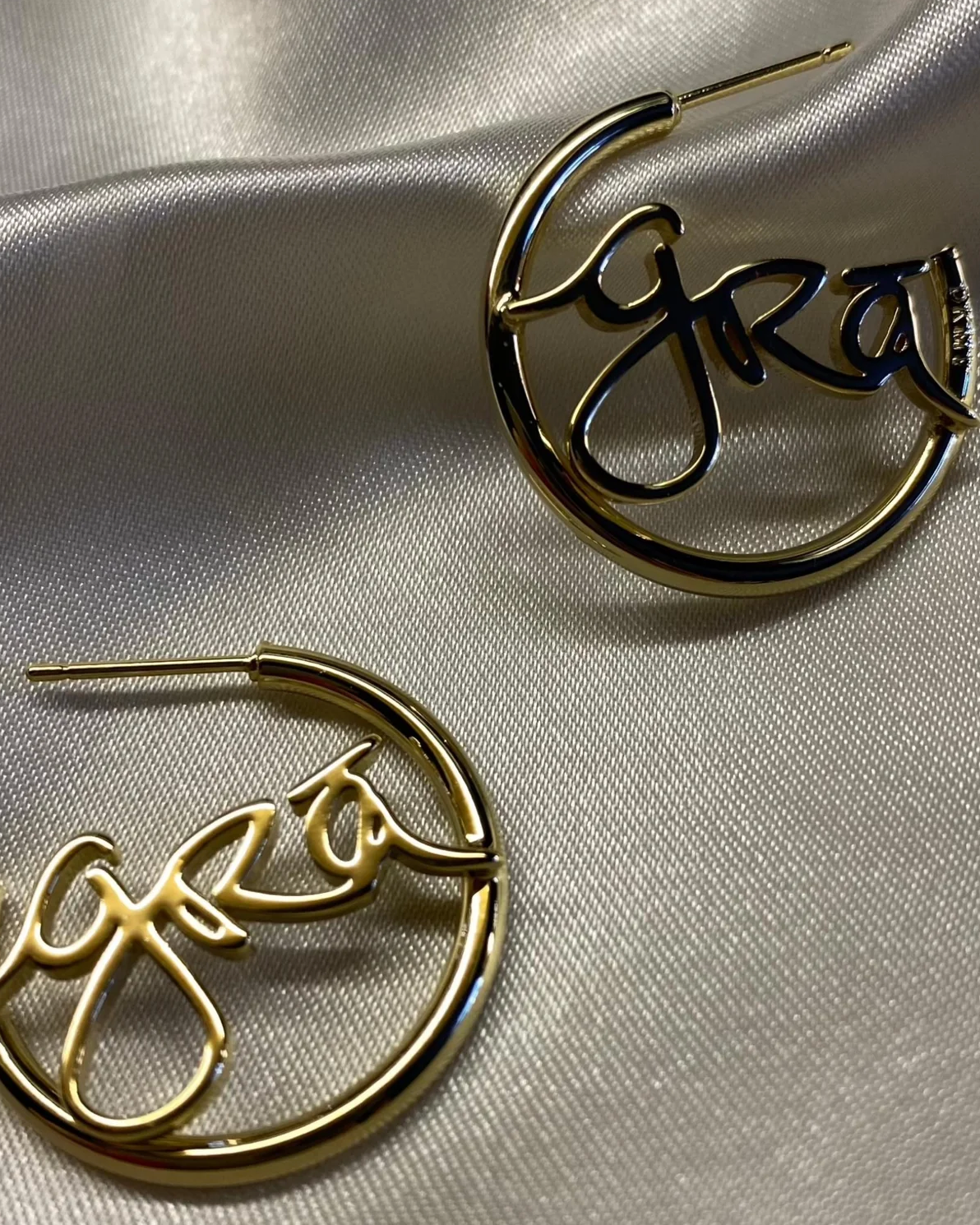 100% Recycled Solid Brass-based delicate 2mm hoop earrings with grá handwriting