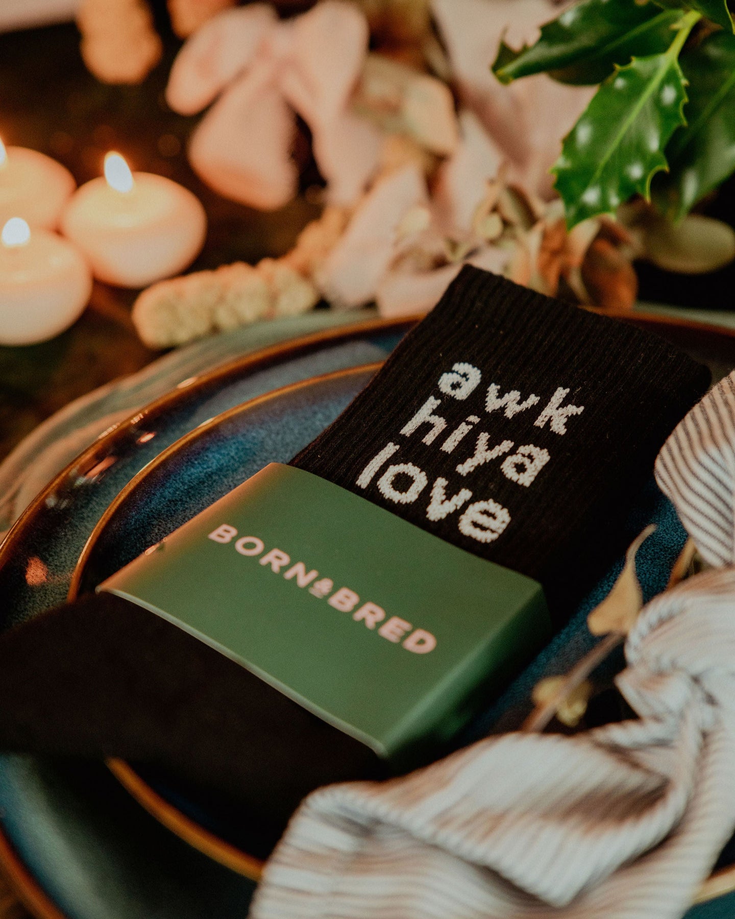 ¡Camina con estilo con nuestros calcetines Awk Hiya Love! Disponibles en 4 colores llamativos y diseñados en Irlanda del Norte, estos calcetines son perfectos para añadir un toque divertido a cualquier conjunto.