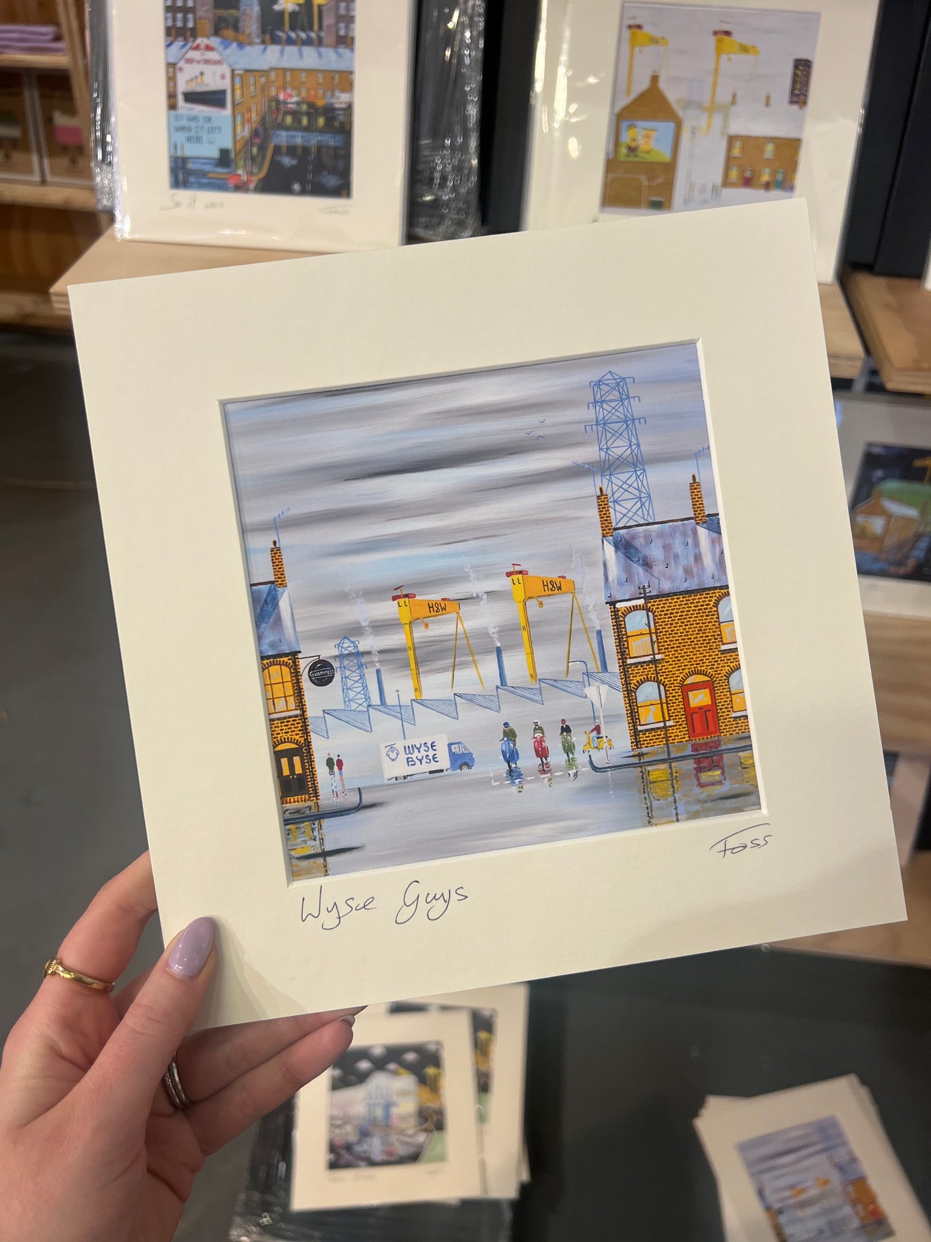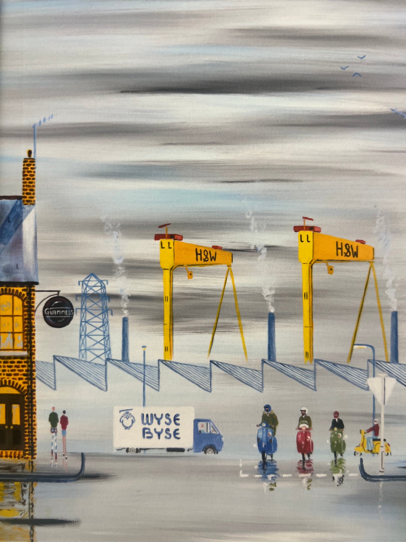 Foss, who was born in Belfast in 1968, is a self-taught artist and works in various mediums. His paintings are based on growing up in Northern Ireland, and focus on the little two up two down terraces packed with life and the streets around them which built our character.